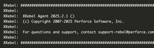 When successful, you will see the XRebel banner in the console right at server startup. This is what the XRebel banner should look like: